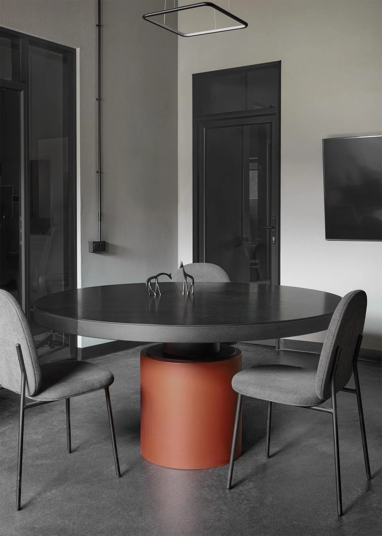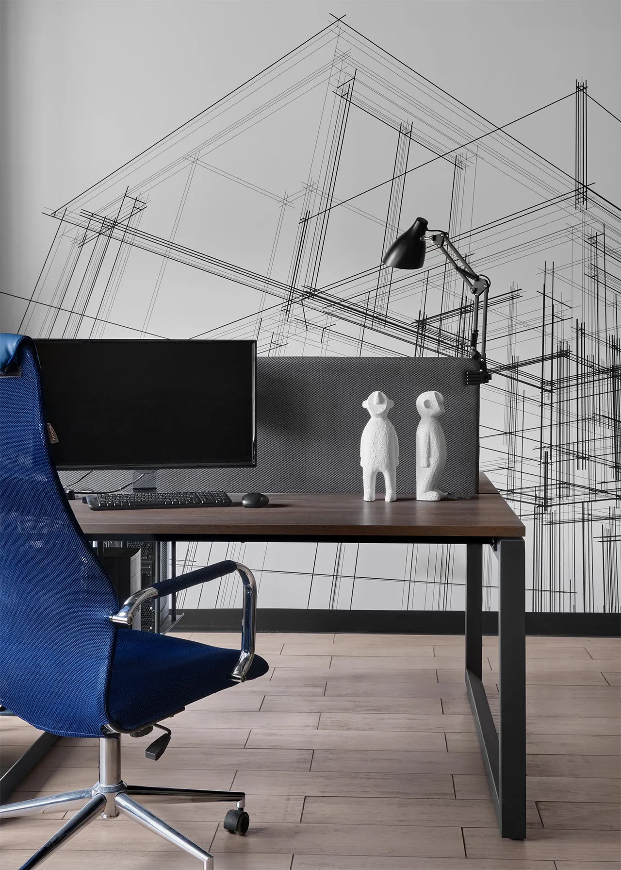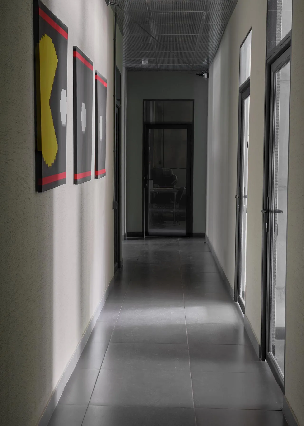 Мы создали пространство, которое отражает суть строительной индустрии — мощь, точность и современный подход. Офис площадью 300 м² сочетает в себе строгую кабинетную систему зонирования и смелые дизайнерские решения.