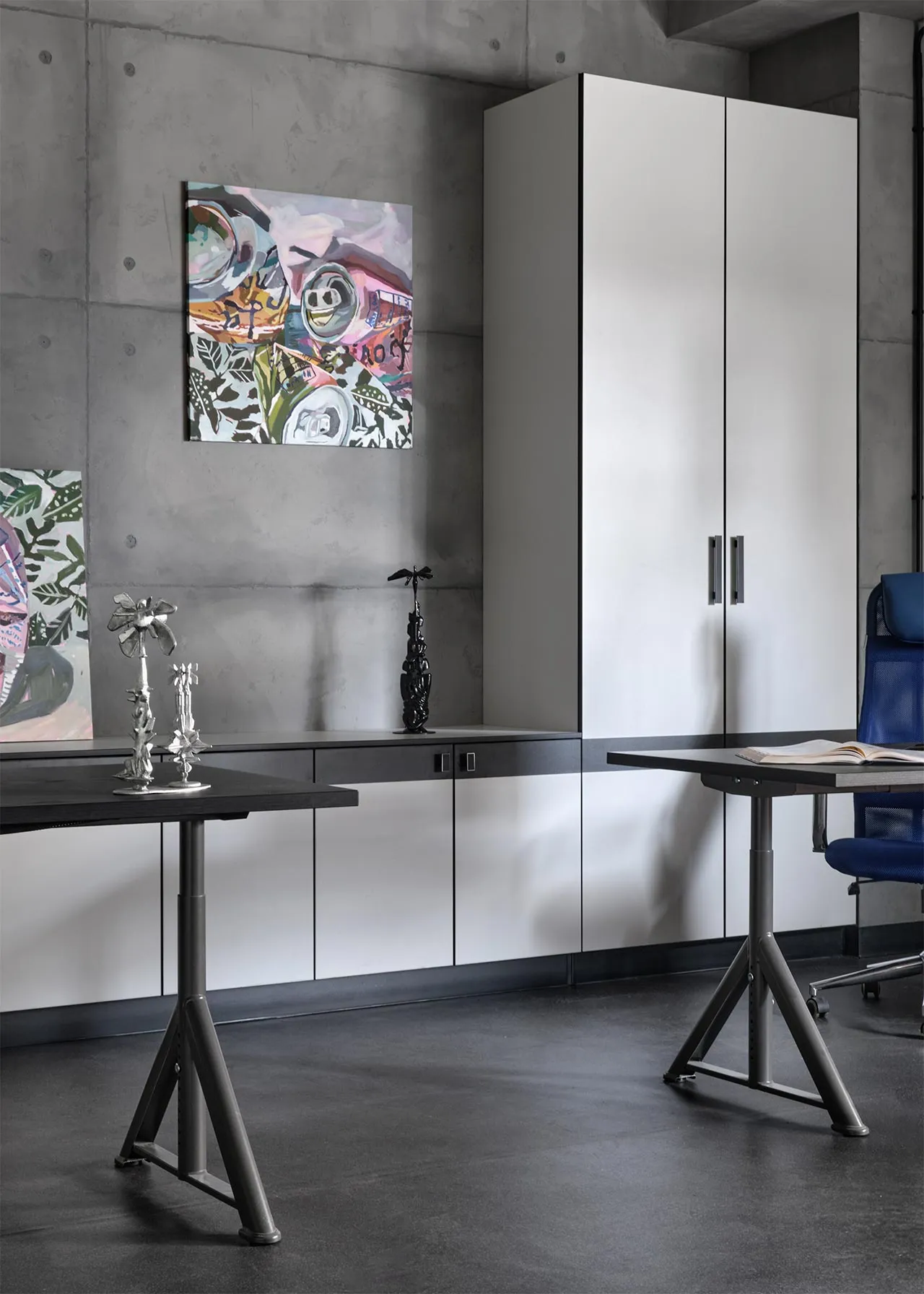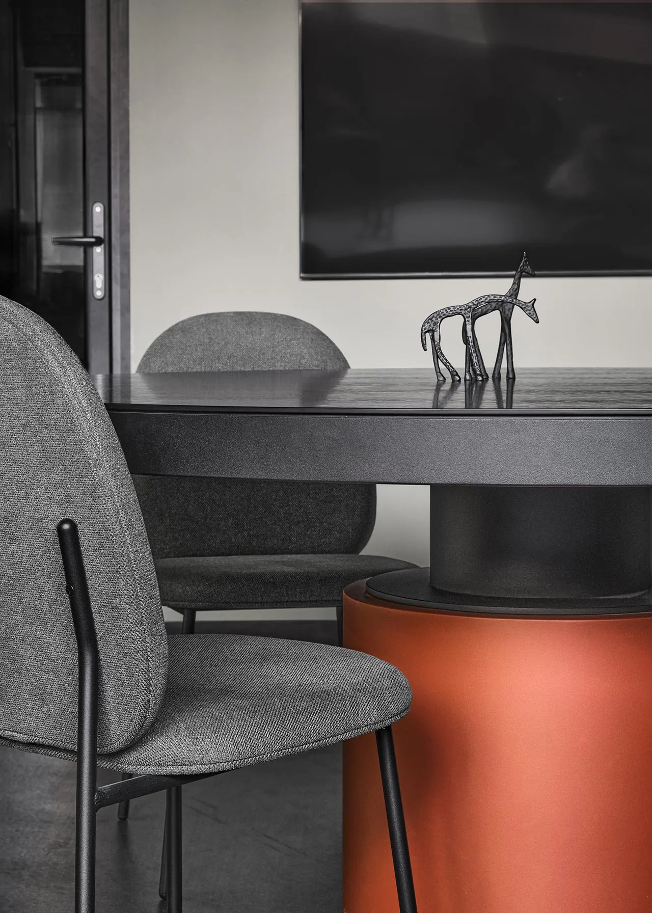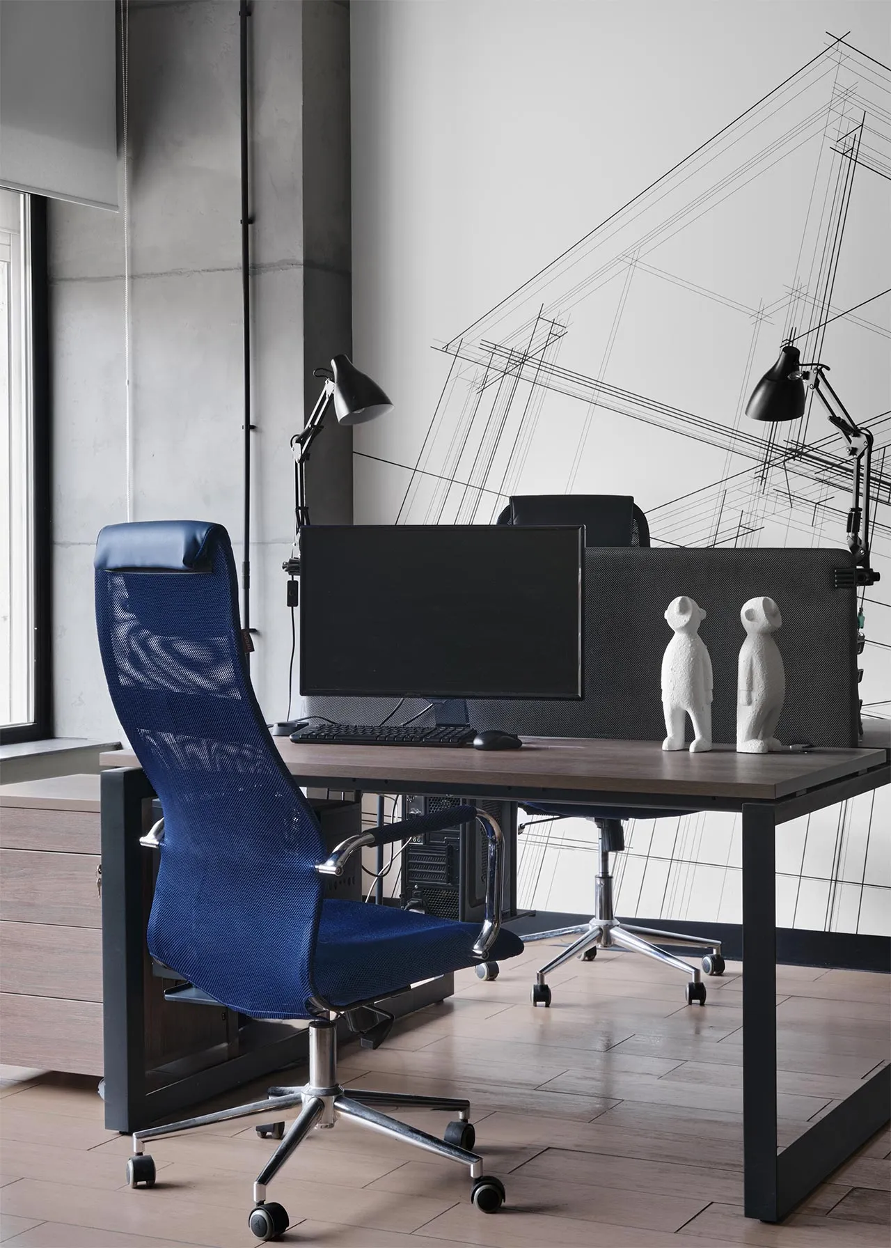 Мы создали пространство, которое отражает суть строительной индустрии — мощь, точность и современный подход. Офис площадью 300 м² сочетает в себе строгую кабинетную систему зонирования и смелые дизайнерские решения.